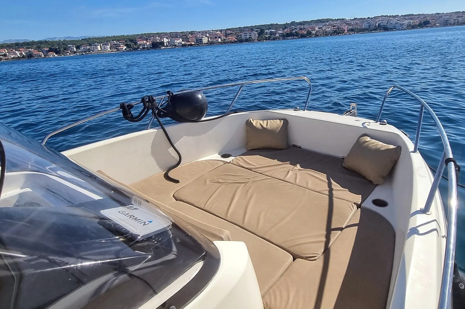 The boat comes fully equipped with a GPS chartplotter and sonar, making sea navigation simple and stress-free. Renting this speedboat gives you the perfect opportunity to explore the stunning Zadar archipelago and its many surrounding islands. A full tank of fuel is more than sufficient for a full day of adventure.